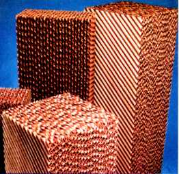 El HumiCool de Munters...ES UN NOMBRE GENÉRICO QUE SE USA PARA DESCRIBIR LOS PRODUCTOS DE ENFRIAMIENTO EVAPORATIVO CELdek MR y GLASdek MR. EL RELLENO CELdek MR ES FABRICADO A PARTIR DE UN PAPEL ESPECIAL DE CELULOSA, QUE ESTA IMPREGNADO CON SALES NO SOLUBLES ANTIPODREDUMBRE Y CON SATURANTES ENDURECEDORES. EL GLASdek MR. ESTA FABRICADO CON FIBRAS DE VIDRIO GRANDES Y ESTA IMPREGNADO CON SATURANTES ENDURECEDORES NO SOLUBLES. EL PRODUCTO GLASdek MR. TIENE LA APROBACIÓN DE LA ULMR CON UNA CLASIFICACIÓN UL 900, CLASE 2, CON UN RANGO DE HASTA 305mm (12") DE PROFUNDIDAD DE RELLENO, RETARDANTE AL FUEGO.